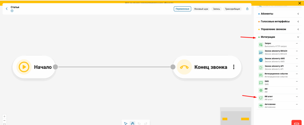 - Теперь нужно настроить сценарий ВАТС для нашего телефонного ИИ агента.